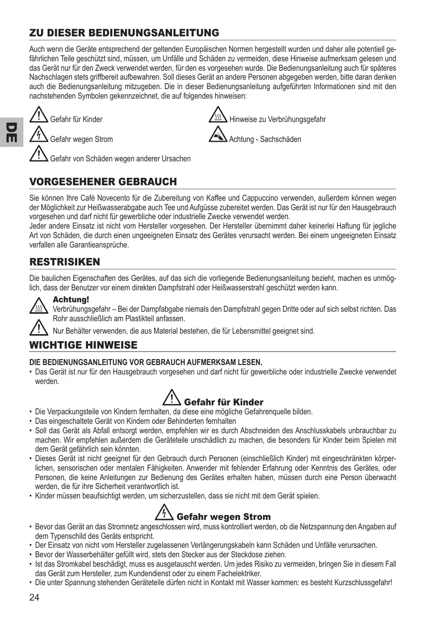 Finden Sie kostenlos die Bedienungsanleitung des Geräts 1387 CAFFE NOVECENTO ARIETE als PDF.
