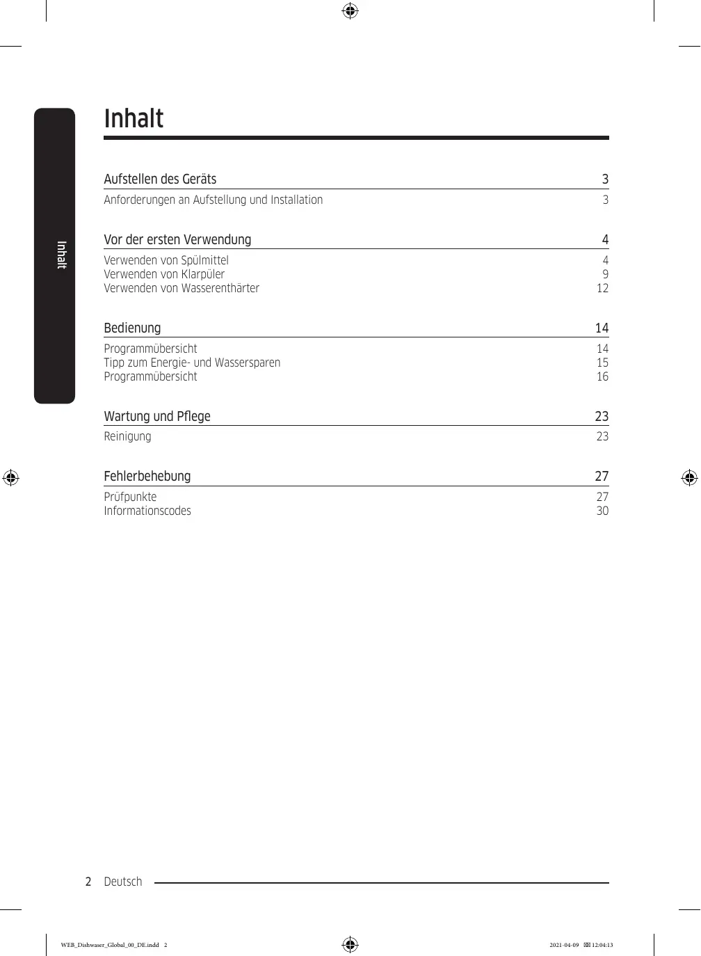Das ÖKO-Programm ist geeignet, um normal verschmutztes Geschirr zu reinigen. Hierfür ist es im Hinblick auf seinen kombinierten Energie- und Wasserverbrauch das effizienteste Programm und es wird zur Beurteilung der Konformität zur Ökodesign-Richtlinie der EU (KOMMISSIONSVERORDNUNG (EU) 2019/2022) eingesetzt. Das manuelle Vorspülen von Geschirr bewirkt erhöhten Wasser- und Energieverbrauch und wird nicht empfohlen. Vor dem Einräumen des Geschirrs in die Spülmaschne können Sie ein Messer o. Ä. verwenden, um große Essensreste zu entfernen. Die Frischwassertemperatur darf bis zu 60 °C betragen, und beim Anschluss der Maschine an eine Warmwasserversorgung wird weniger Strom verbraucht. Es ist besser, den Korb wenn möglich ganz zu füllen, ihn aber nicht zu überladen. Verwenden Sie das ÖKO-Programm, um Wasser und Energie zu sparen. Das ÖKO- Programm spült normal verschmutztes Geschirr am effizientesten. Verwenden Sie eine ausreichende Menge an Spülmittel und beachten Sie beim Spülen die Angaben des Herstellers. Durch den Einsatz eines Geschirrspülers sparen Sie im Vergleich zur normalen Handwäsche Wasser. Informationen zum Ökodesign finden Sie unter www.samsung.com/support.