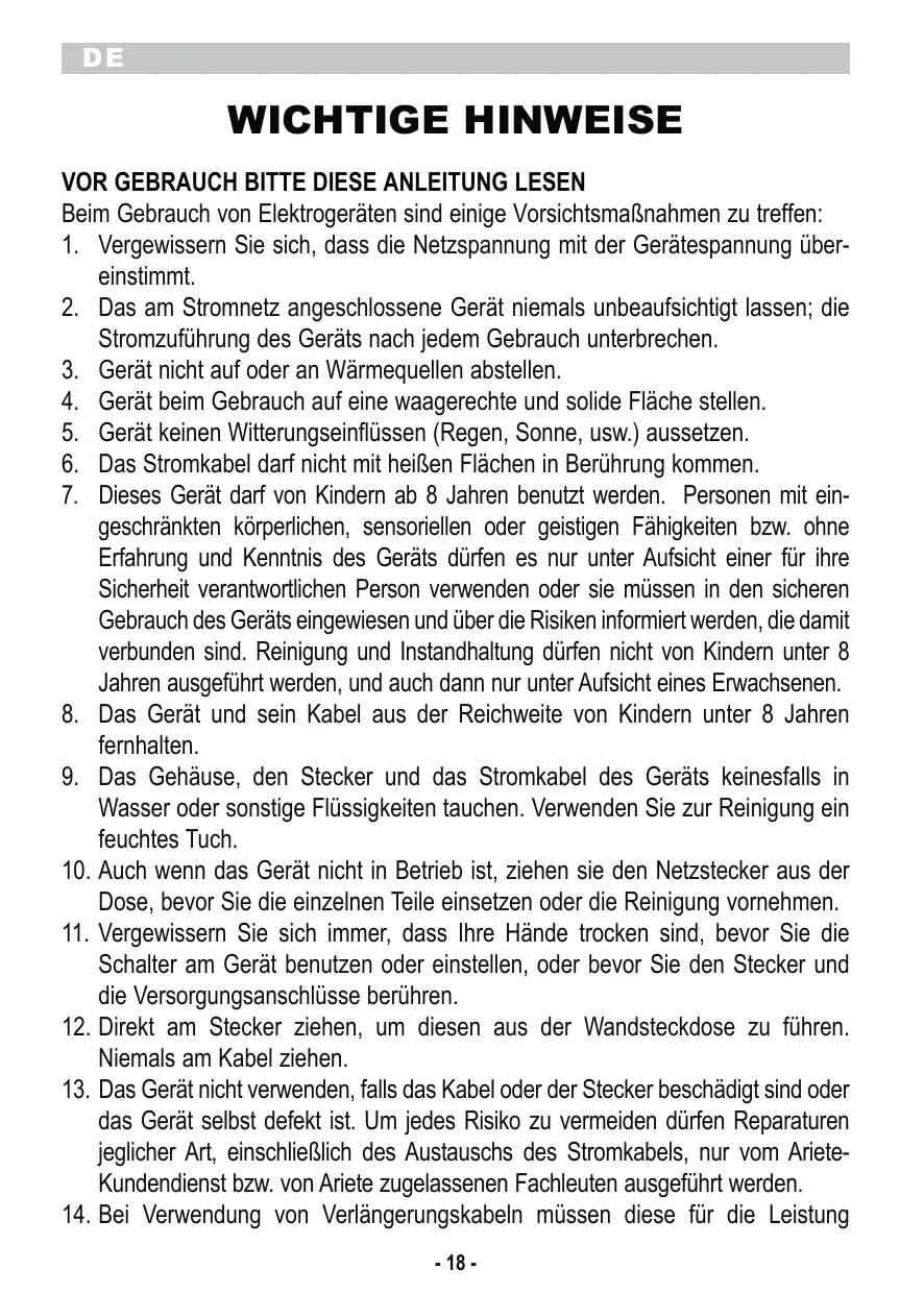 Finden Sie kostenlos die Bedienungsanleitung des Geräts 951 ARIETE als PDF.