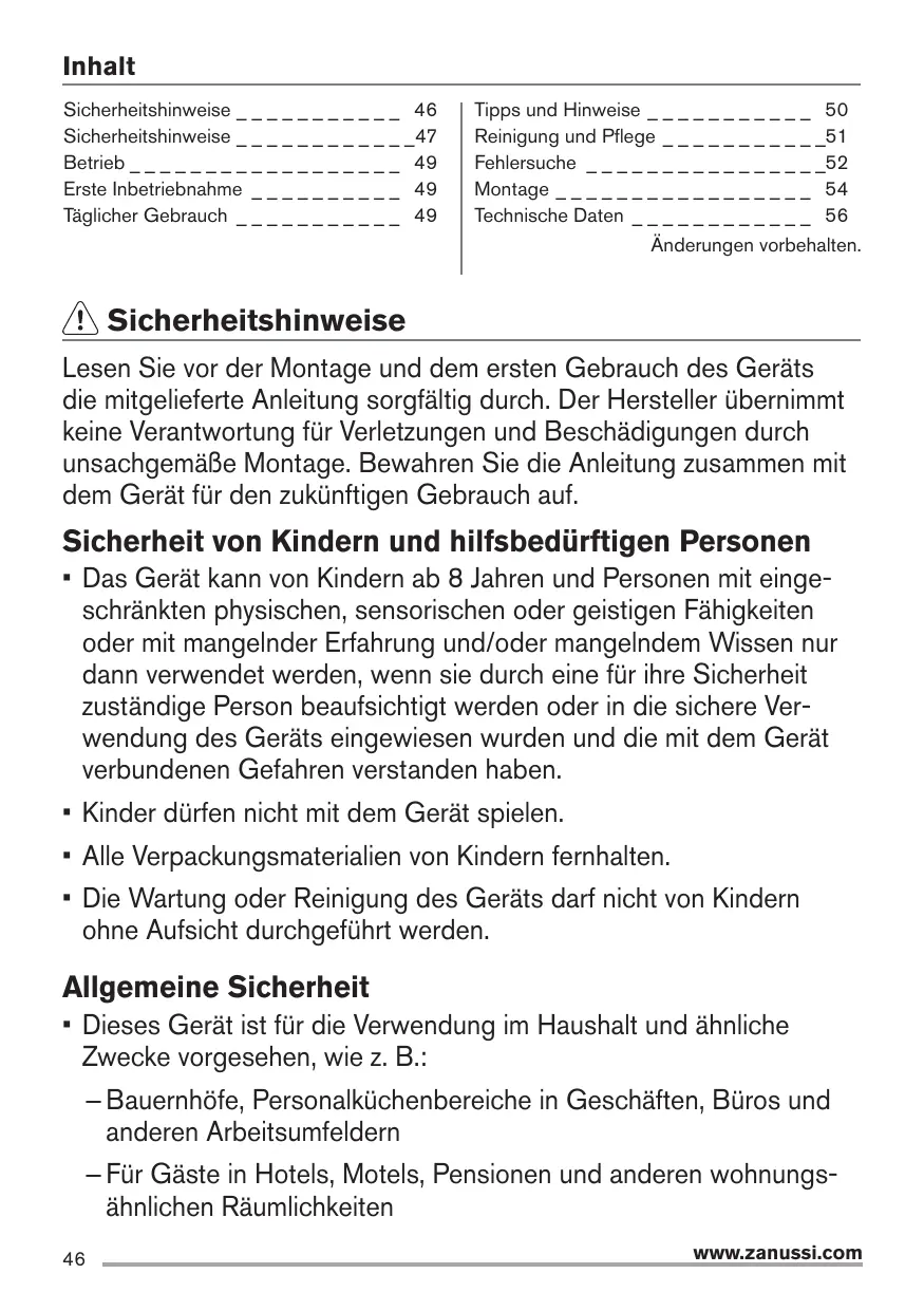 Finden Sie kostenlos die Bedienungsanleitung des Geräts ZFX31401WA ZANUSSI als PDF.