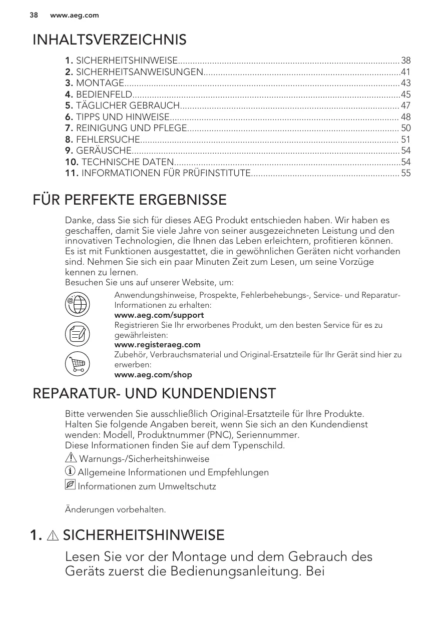 BEDIENUNGSANLEITUNG ABE812E6NF AEG