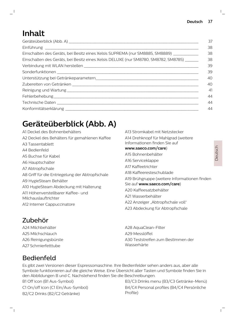 BEDIENUNGSANLEITUNG XELSIS SM8889 SAECO