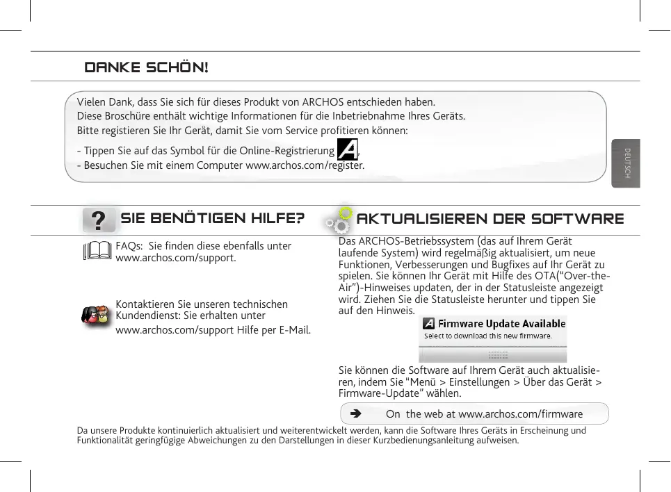 Vielen Dank, dass Sie sich für diese Produkte von ARCHOS entschieden haben.