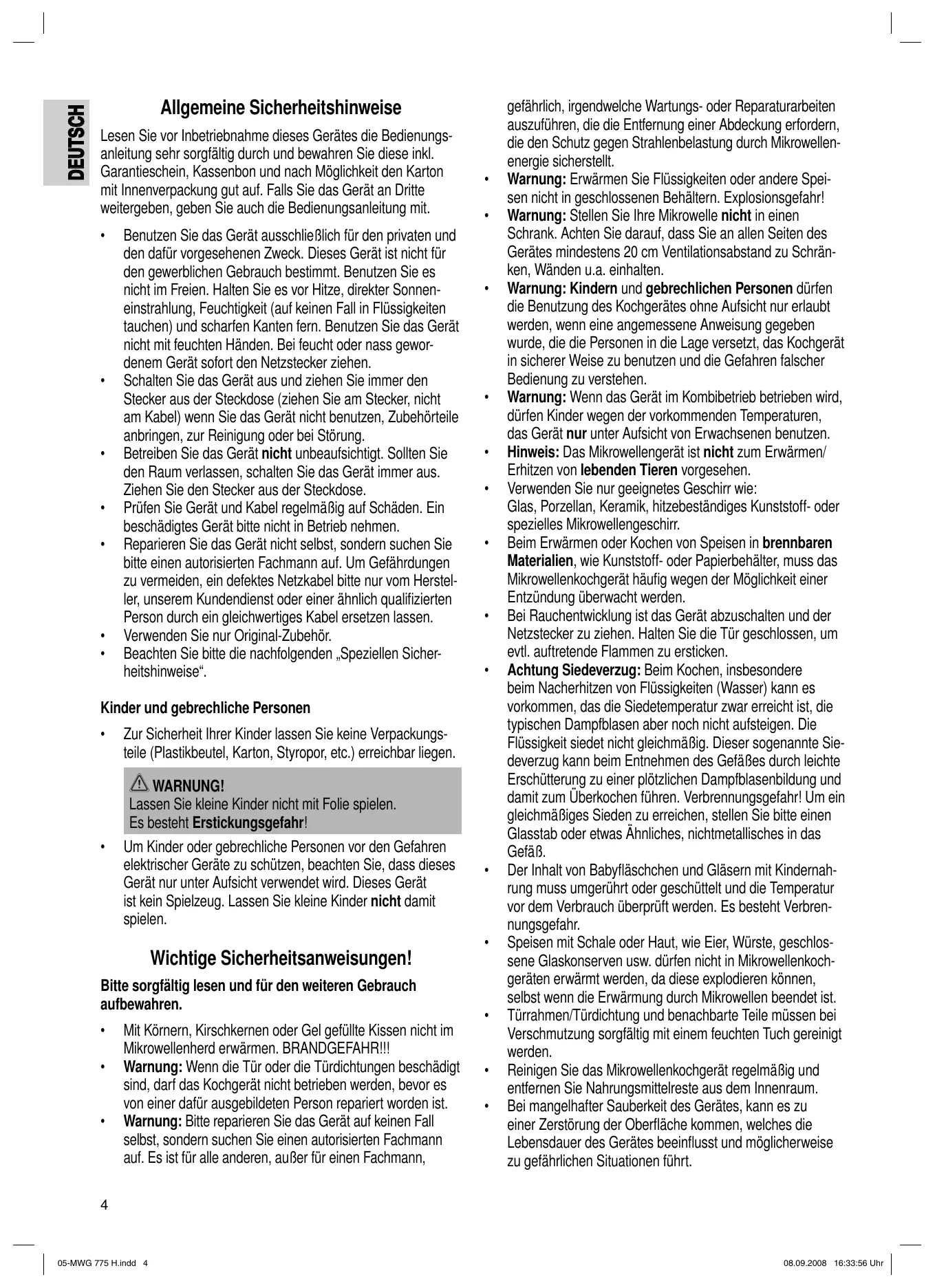 BEDIENUNGSANLEITUNG MWG 775 H CLATRONIC