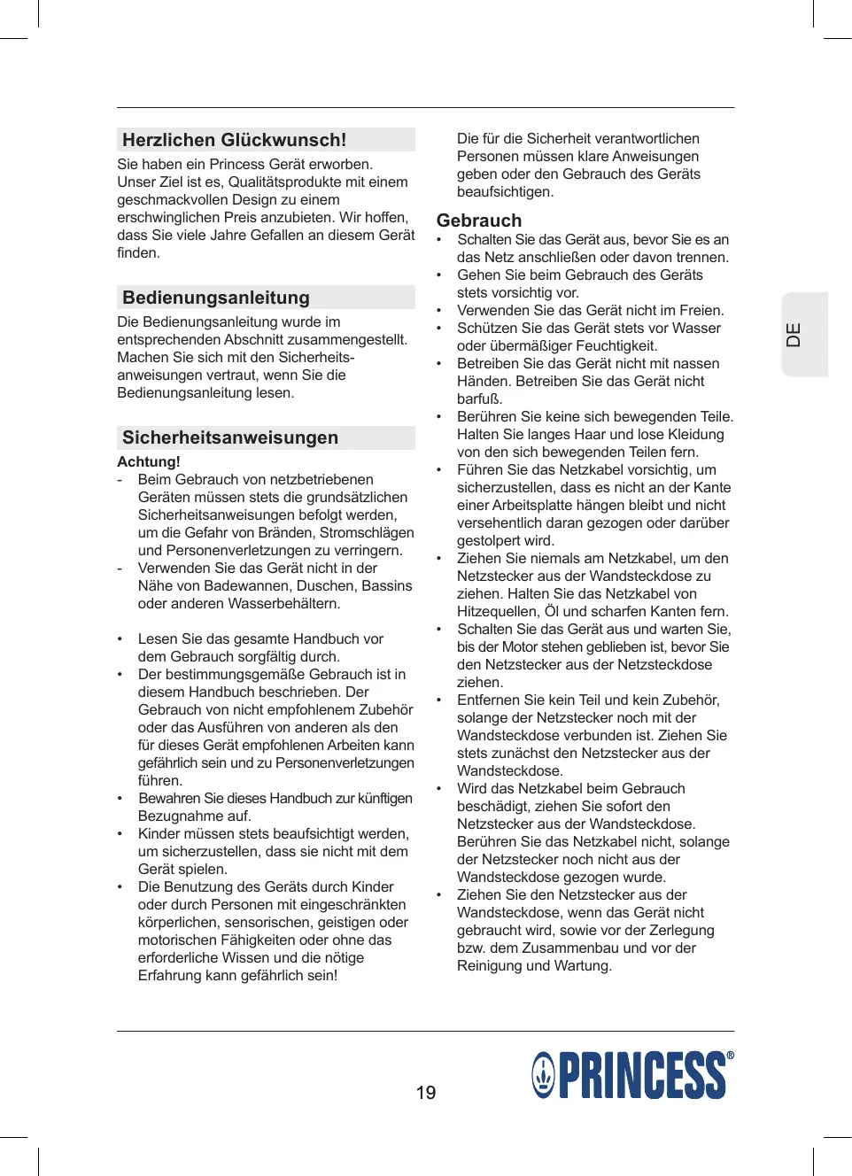 Laden Sie die Anleitung für Ihr kostenlos im PDF-Format! Finden Sie Ihr Handbuch CLASSIC POWER 212022 - PRINCESS und nehmen Sie Ihr elektronisches Gerät wieder in die Hand. Auf dieser Seite sind alle Dokumente veröffentlicht, die für die Verwendung Ihres Geräts notwendig sind. CLASSIC POWER 212022 von der Marke PRINCESS.