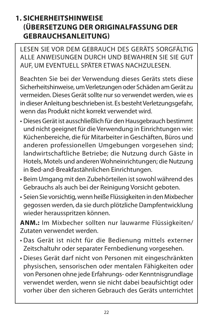 mitgelieferte Mixbecher ist nicht für den Gebrauch mit heißen Flüssigkeiten geeignet.