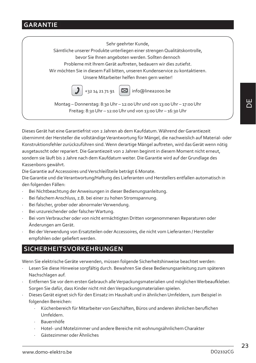 BEDIENUNGSANLEITUNG DO2332CG DOMO