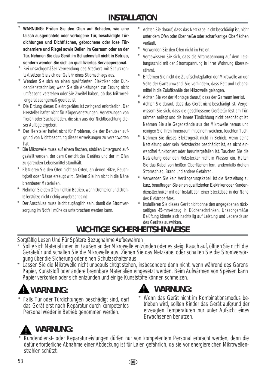 Heizelementen im Innern der Mikrowelle in Berührung zu kommen. DE