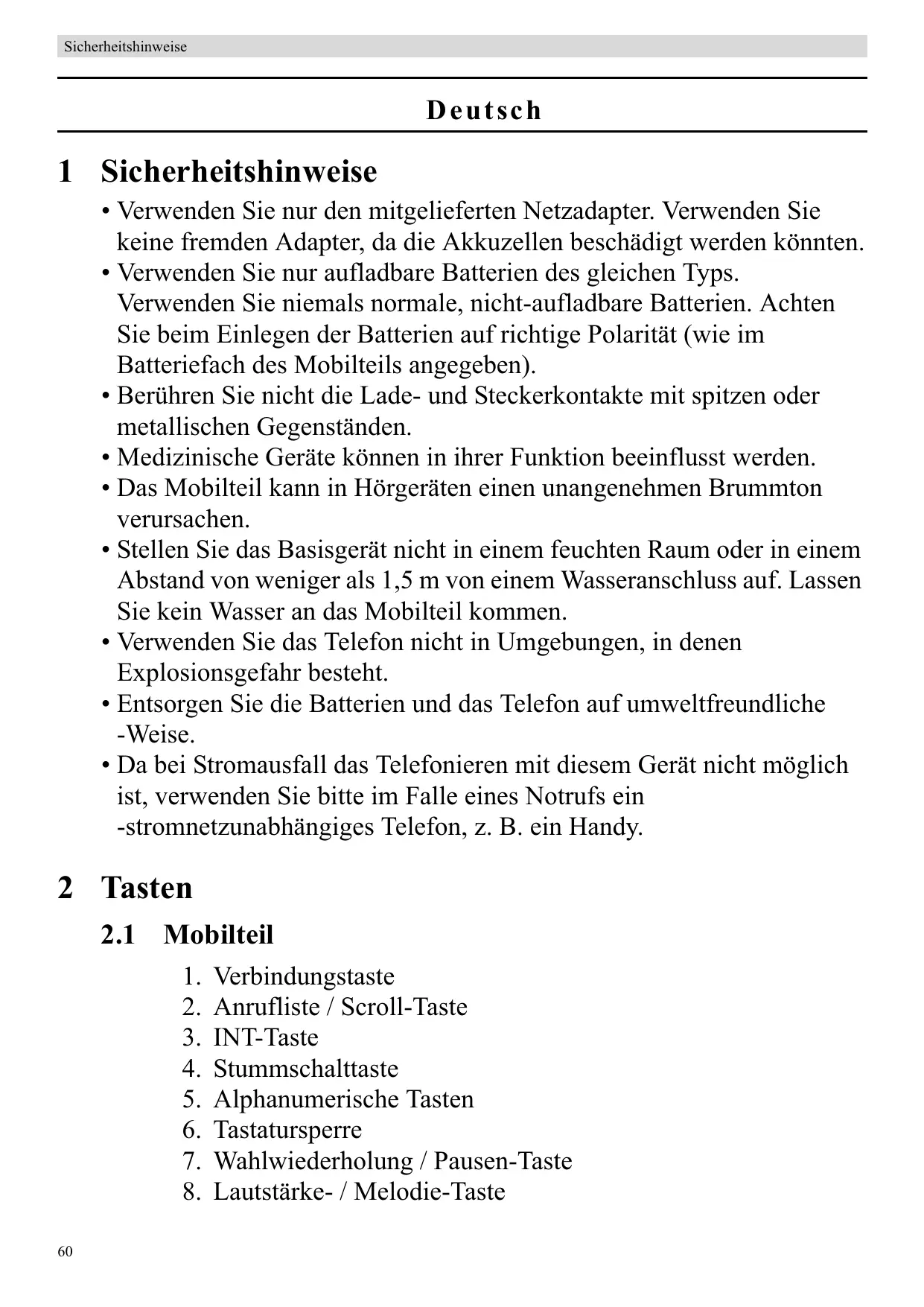 Sicherheitshinweise Deutsch 1 Sicherheitshinweise