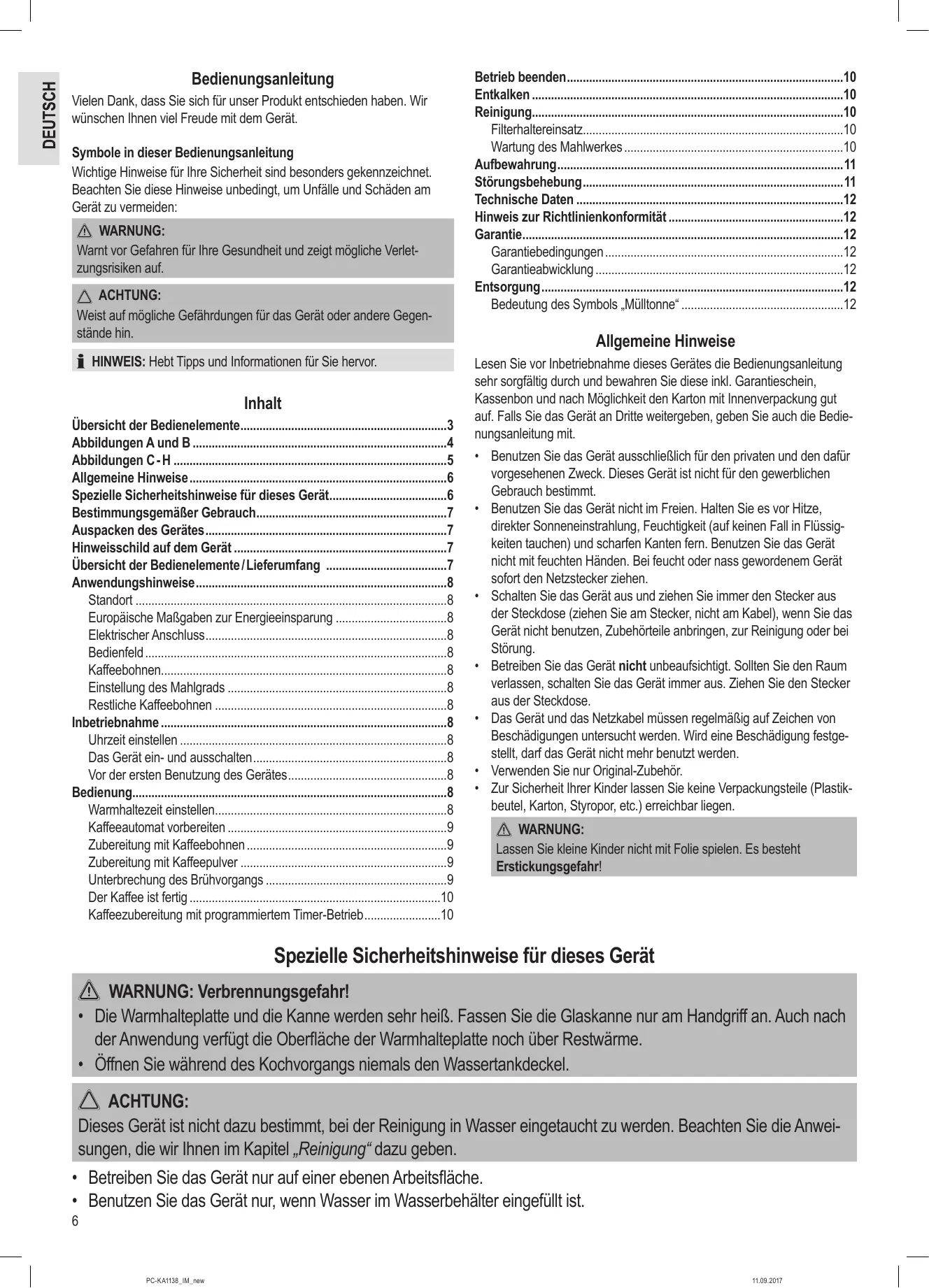BEDIENUNGSANLEITUNG PC-KA1138 PROFICOOK
