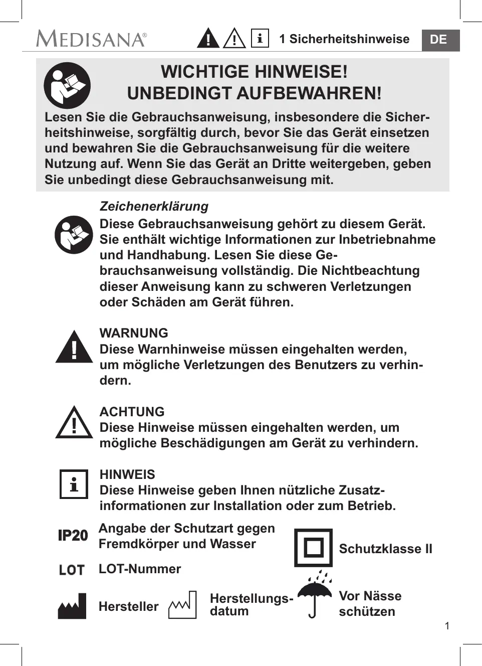 - Auf MEDISANA Produkte wird ab Verkaufsdatum eine Garantie für 3 Jahre gewährt. Das Verkaufsdatum ist im Garantiefall durch Kaufquittung oder Rechnung nachzuweisen.