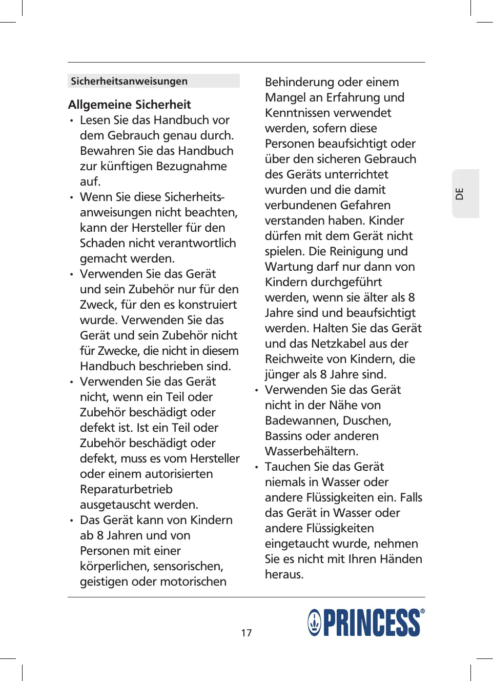 Finden Sie kostenlos die Bedienungsanleitung des Geräts 212042.01.001 PRINCESS als PDF.