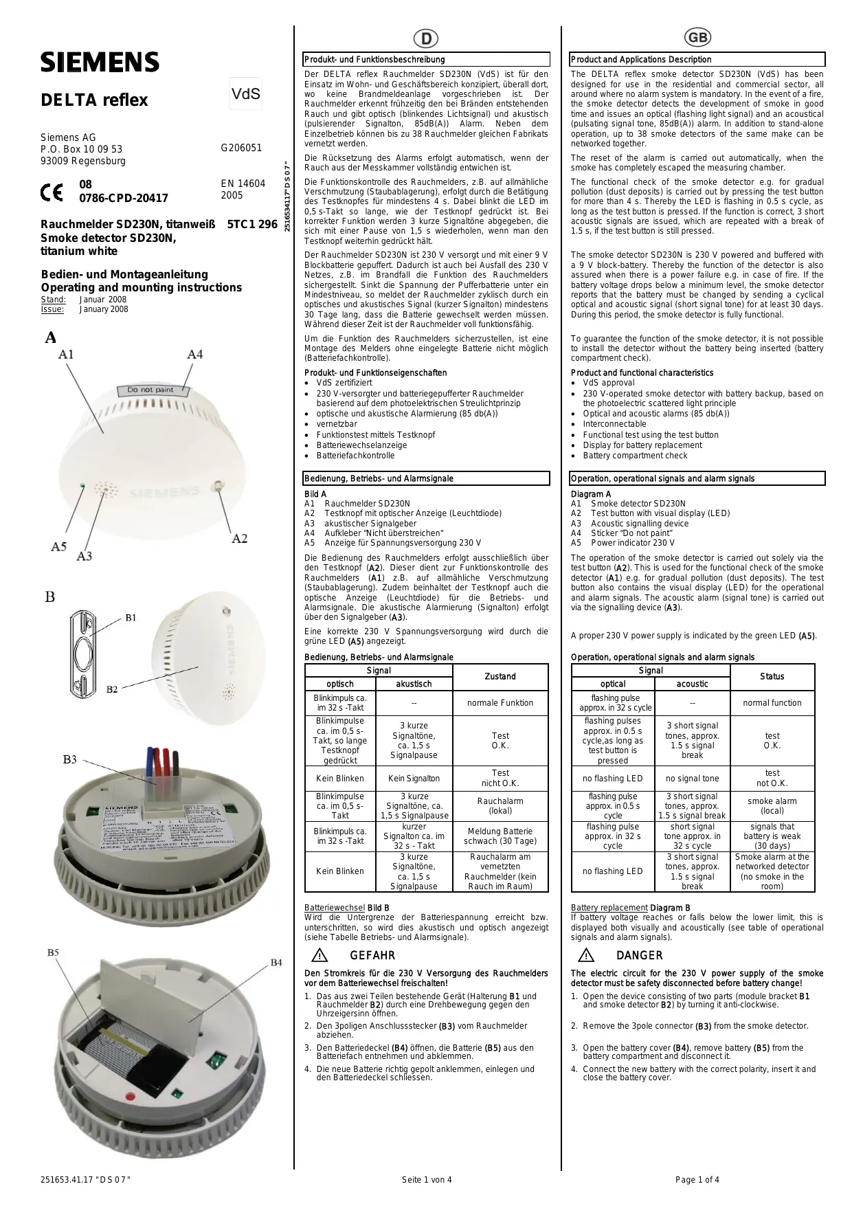 Finden Sie kostenlos die Bedienungsanleitung des Geräts SD230N SIEMENS als PDF.