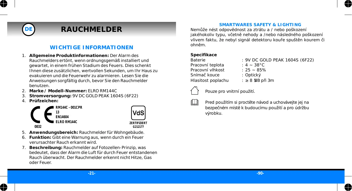 RM144C - Rauchmelder ELRO - Kostenlose Bedienungsanleitung