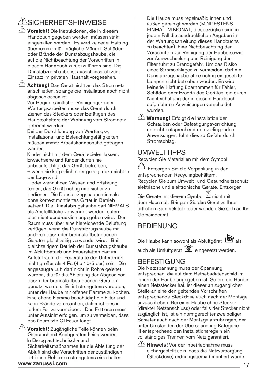 Laden Sie die Anleitung für Ihr Dunstabzugshaube kostenlos im PDF-Format! Finden Sie Ihr Handbuch ZHC92662XA - ZANUSSI und nehmen Sie Ihr elektronisches Gerät wieder in die Hand. Auf dieser Seite sind alle Dokumente veröffentlicht, die für die Verwendung Ihres Geräts notwendig sind. ZHC92662XA von der Marke ZANUSSI.