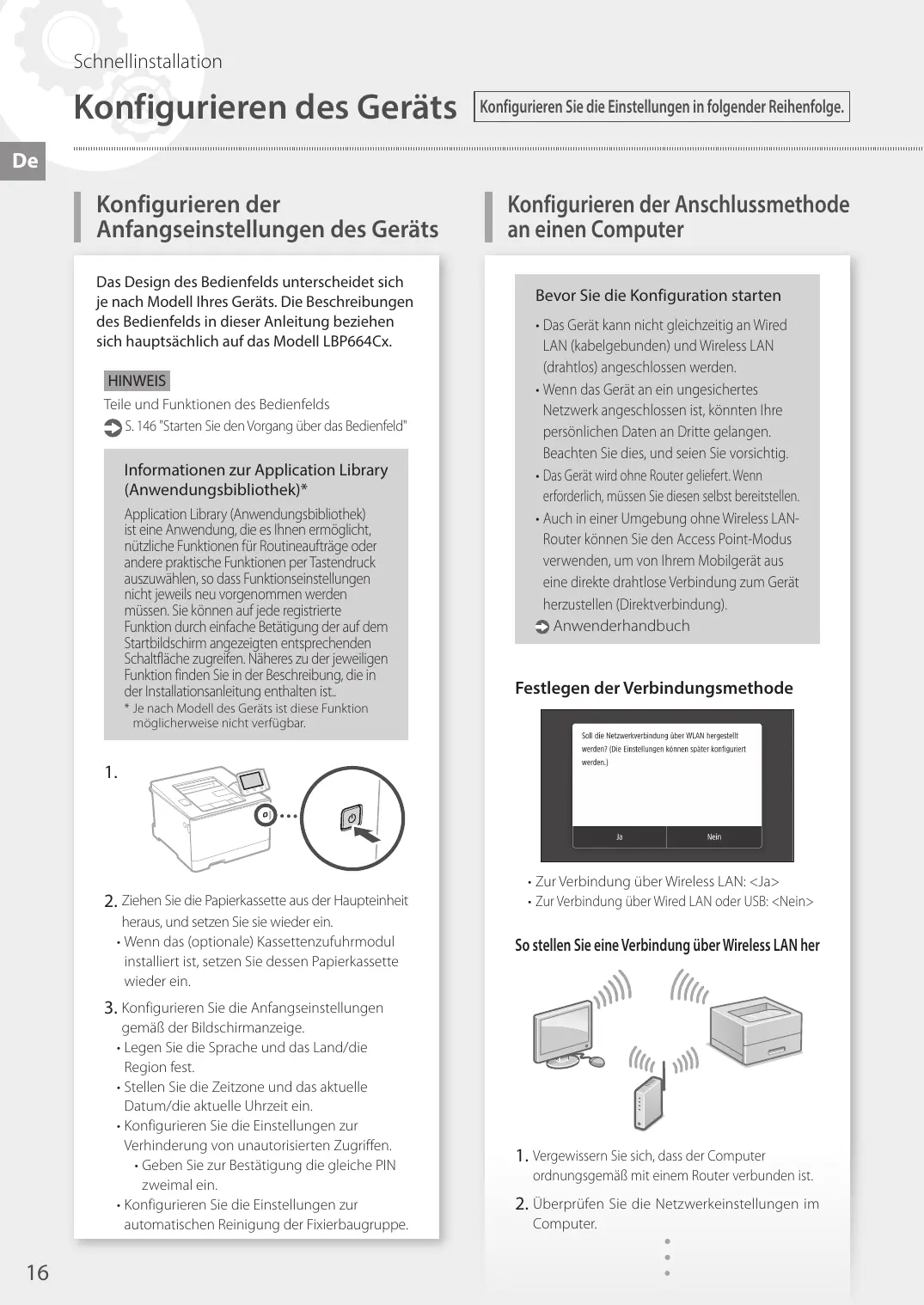 Anfangseinstellungen des Geräts Das Design des Bedienfelds unterscheidet sich je nach Modell Ihres Geräts. Die Beschreibungen des Bedienfelds in dieser Anleitung beziehen sich hauptsächlich auf das Modell LBP664Cx. HINWEIS Teile und Funktionen des Bedienfelds S. 146 "Starten Sie den Vorgang über das Bedienfeld"
