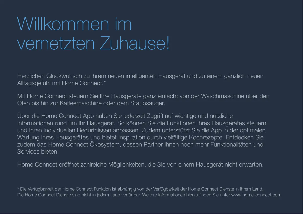électroménager en toute sécurité avec la fonction Home Connect, veuillez tenir compte des consignes de sécurité figurant dans le mode d’emploi de votre appareil.