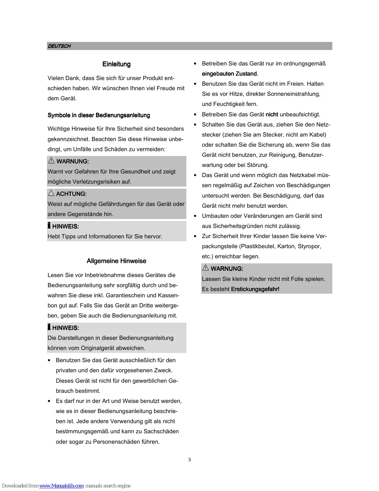 Downloaded from www.Manualslib.com manuals search engine Spezielle Sicherheitshinweise für dieses Gerät