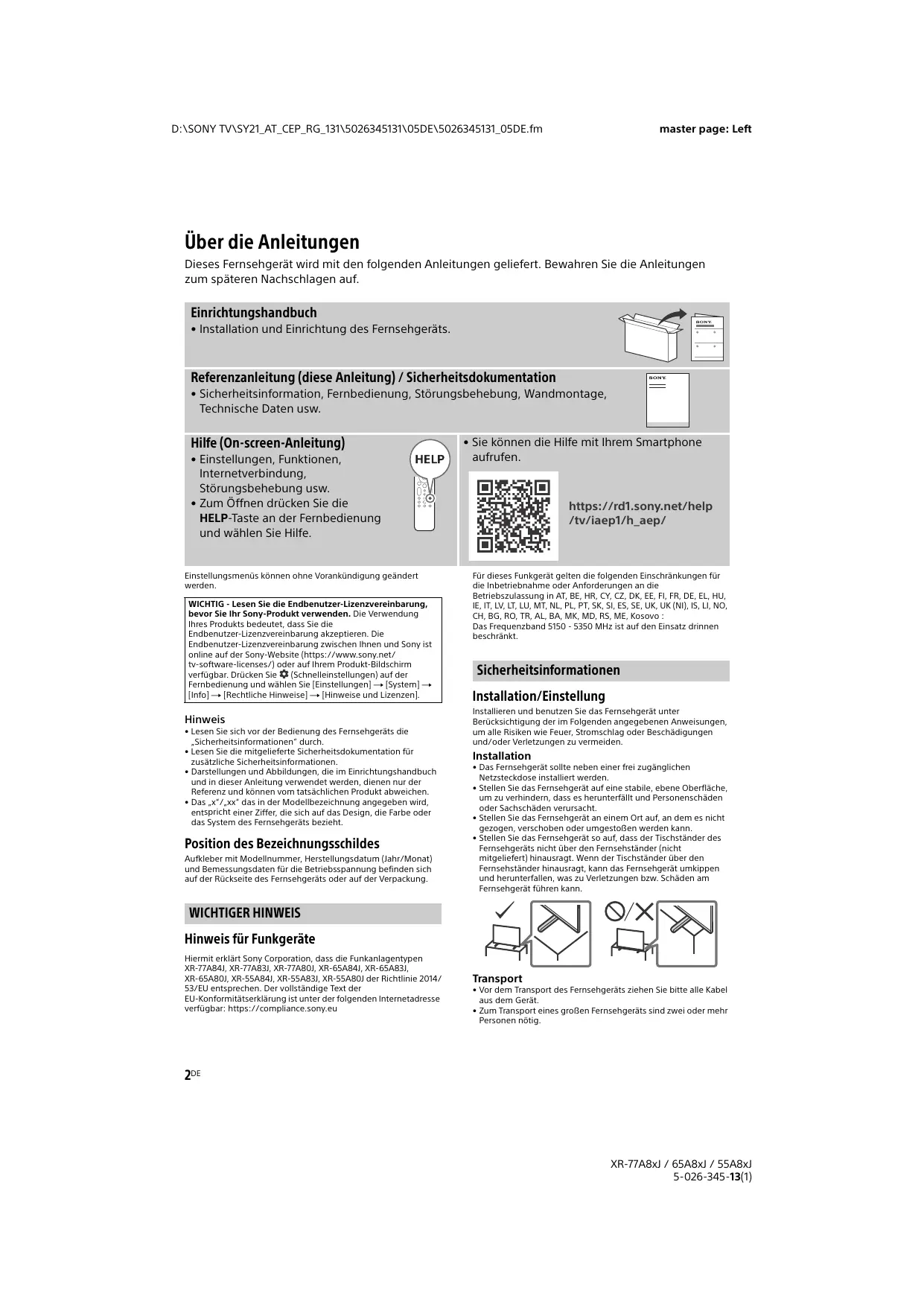 BEDIENUNGSANLEITUNG BRAVIA XR-55A80J - BRAVIA XR-65A80J - XR-77A80J SONY