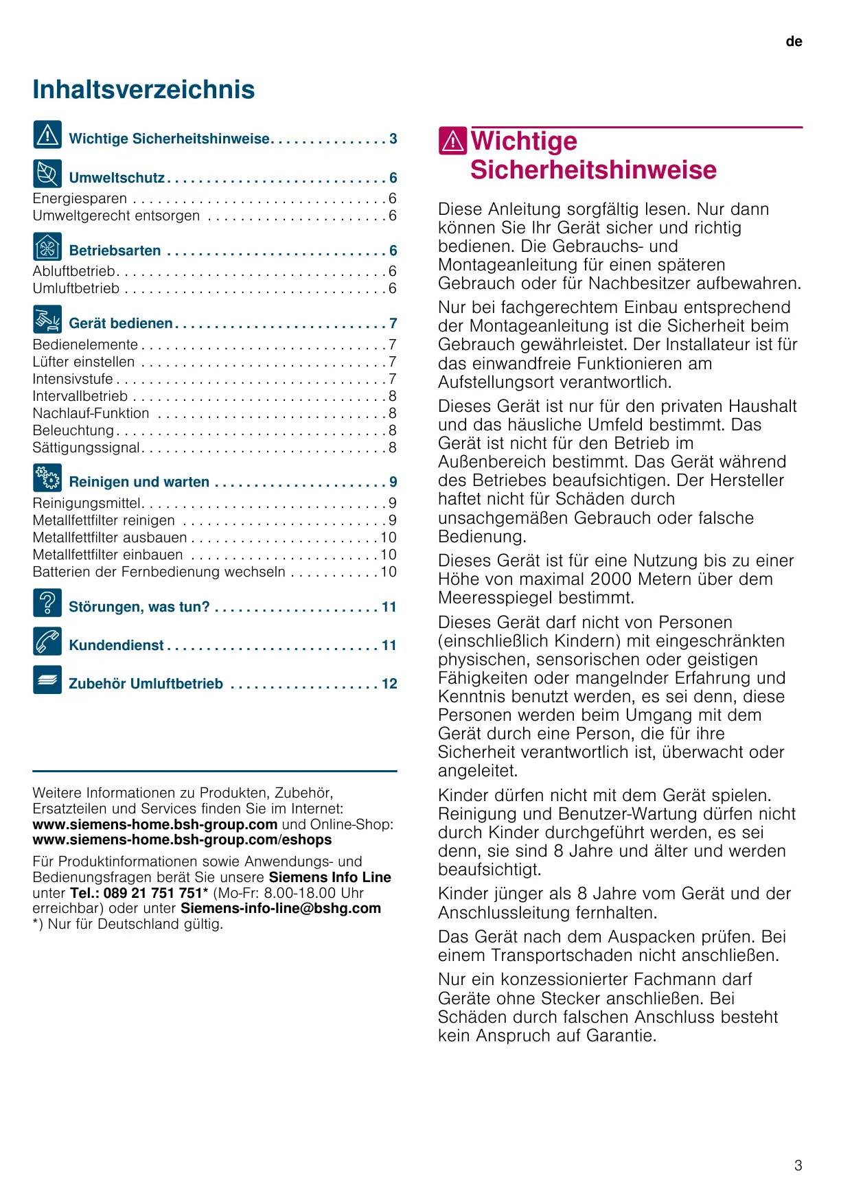 ( Wichtige Sicherheitshinweise. . . . . . . . . . . . . . . 3 7 Umweltschutz . . . . . . . . . . . . . . . . . . . . . . . . . . . . 6 Energiesparen . . . . . . . . . . . . . . . . . . . . . . . . . . . . . . . 6 Umweltgerecht entsorgen . . . . . . . . . . . . . . . . . . . . . . 6