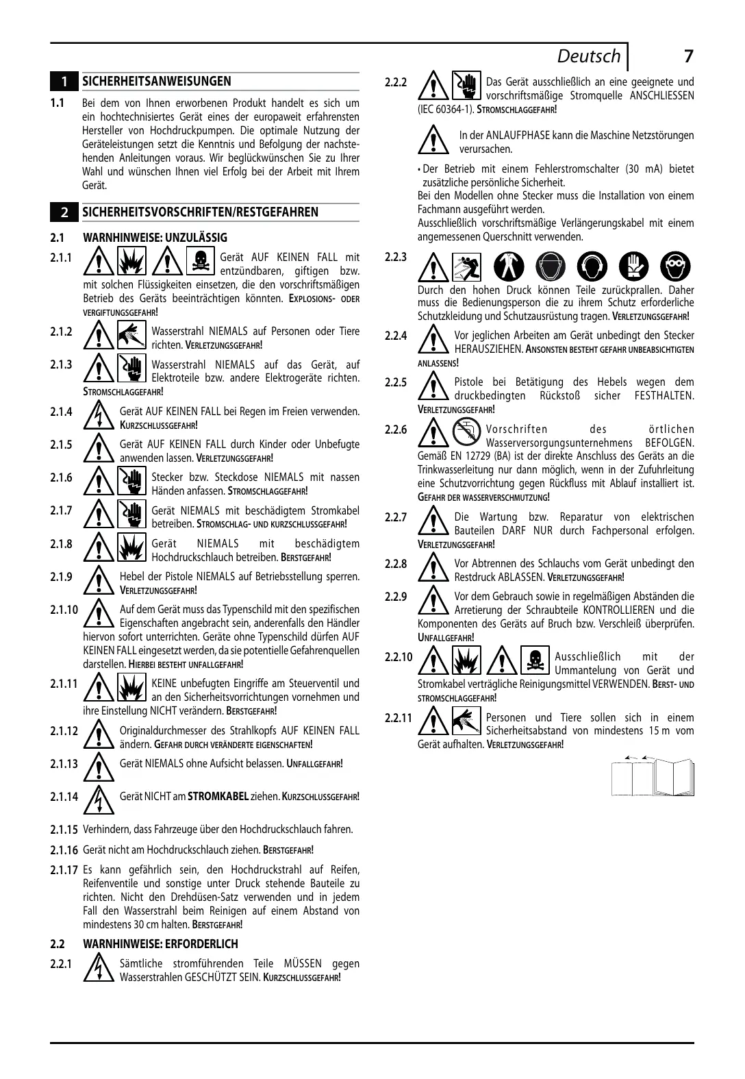 • Dans ce cas, le fonctionnement avec un disjoncteur différentiel de sécurité offre une protection personnelle supplémentaire (30 mA). Sur les modèles sans fiche, l'installation doit être effectuée par du personnel qualifié. N’utilisez que des rallonges électriques autorisées et avec une section appropriée.
