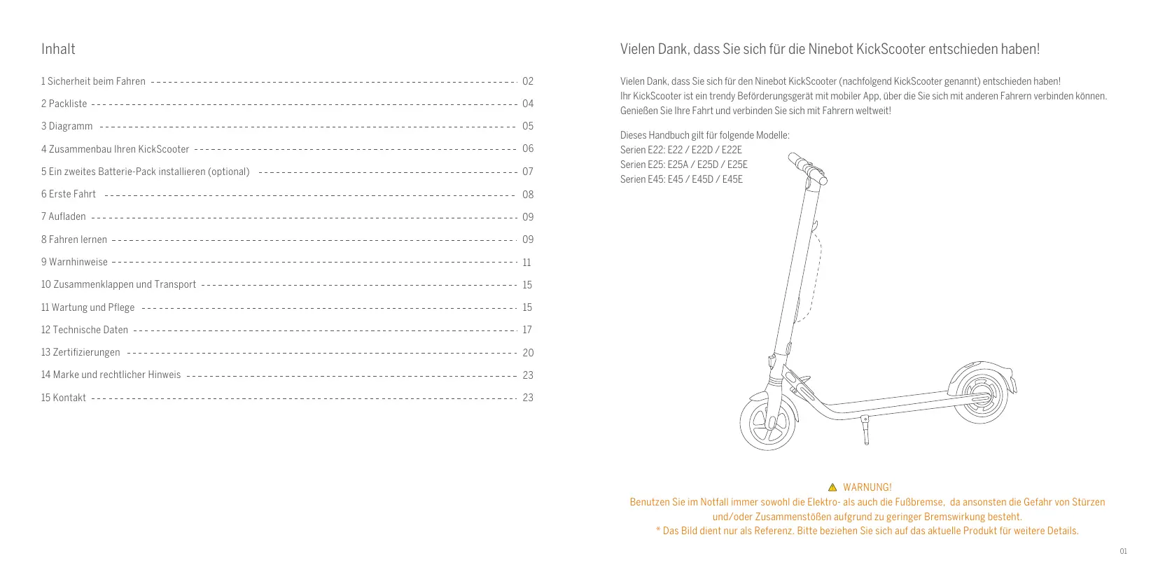 BEDIENUNGSANLEITUNG BY SEGWAY E22E 20KM/H NINEBOT
