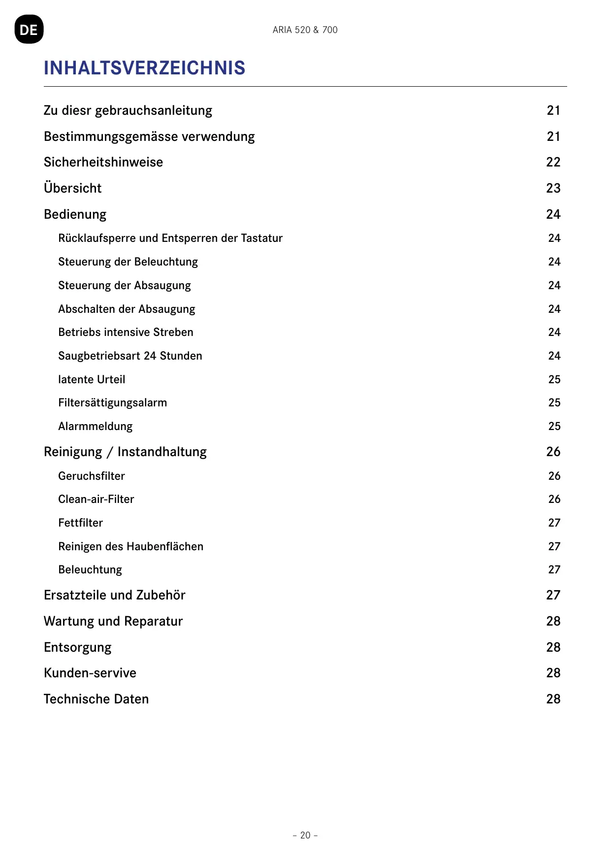 BESTIMMUNGSGEMÄSSE VERWENDUNG Die Abzugshaube wurde ausschließlich für den häuslichen Gebrauch entwickelt, um Kochdünste zu beseitigen. Die Abzugshaube, die mit einem Fettfilter und einem Geruchsfilter ausgestattet ist, entfernt über dem Kochfeld entstehende Dünste über eine Umluft- oder Luftabsauganlage.