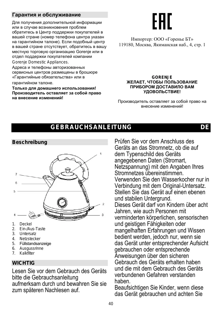Finden Sie kostenlos die Bedienungsanleitung des Geräts K17CLI GORENJE als PDF.