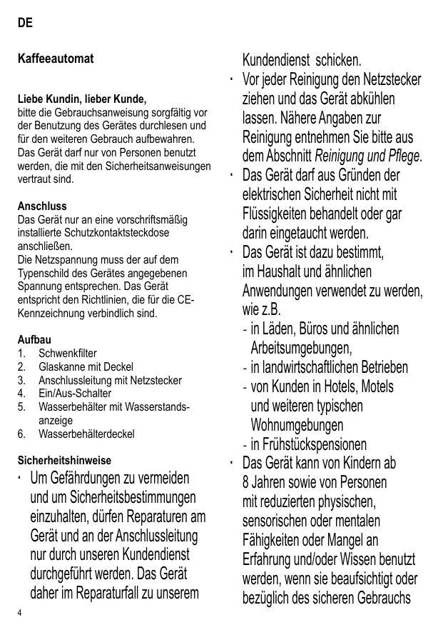 KA 4487 - SEVERIN - Kostenlose Bedienungsanleitung