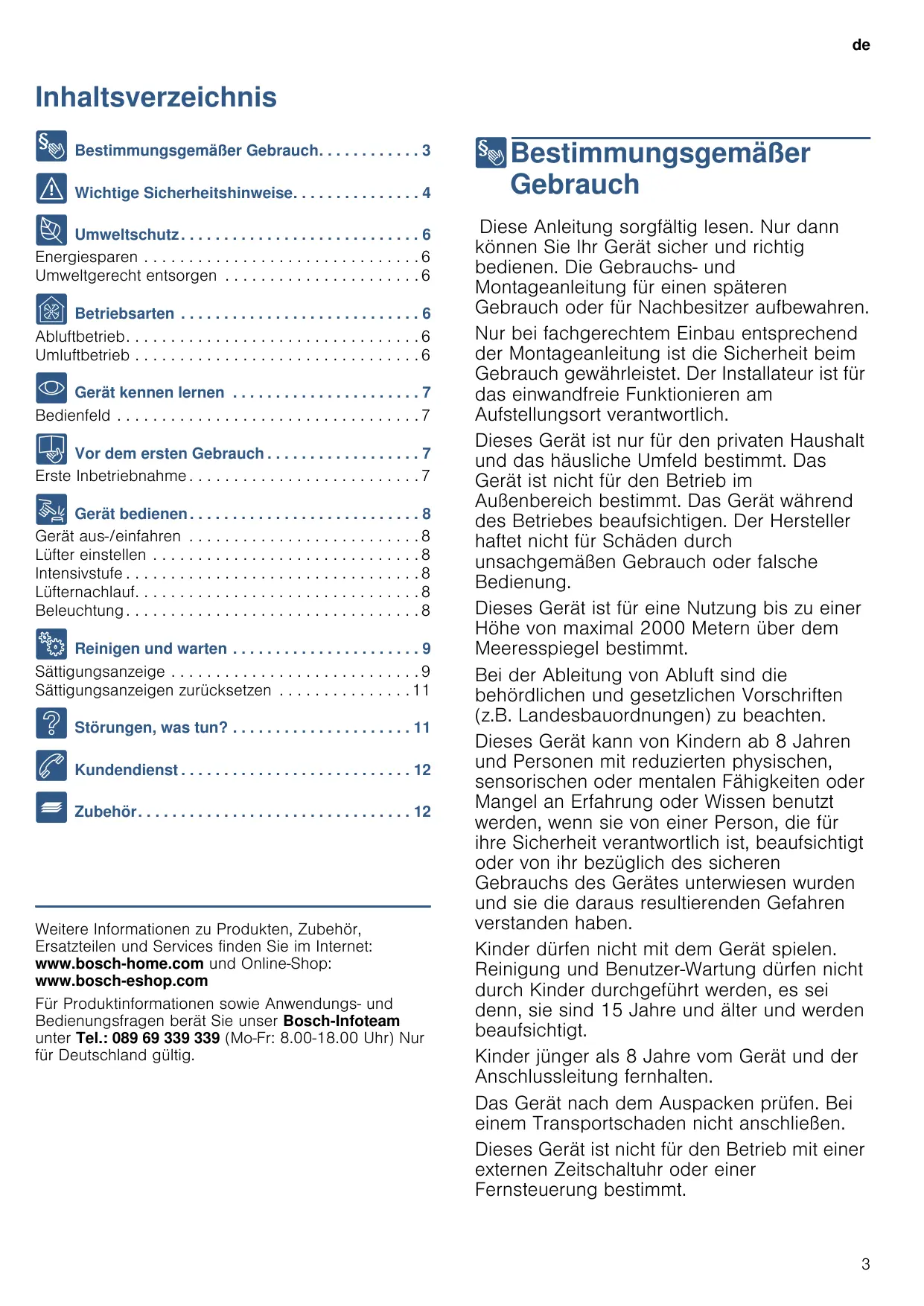 Inhaltsverzeichnis [de]Gebr auchsanl ei t ungDunst abzugshaube