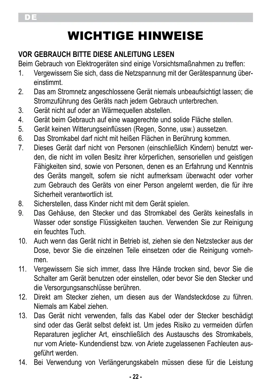 BEDIENUNGSANLEITUNG 1597 - 00C159700AR0 - 00C159700AR ARIETE