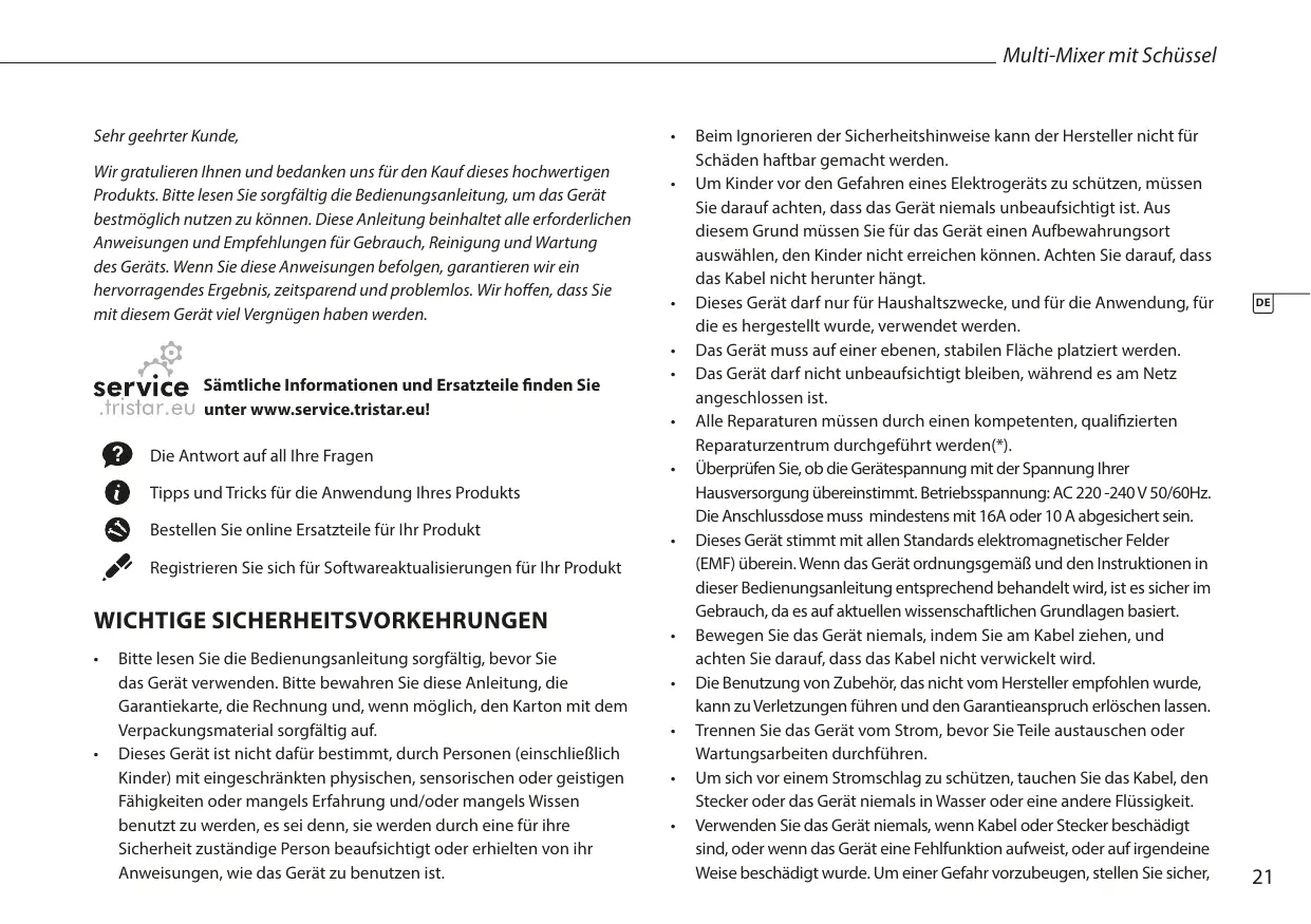 MX-4161 - TRISTAR - Kostenlose Bedienungsanleitung