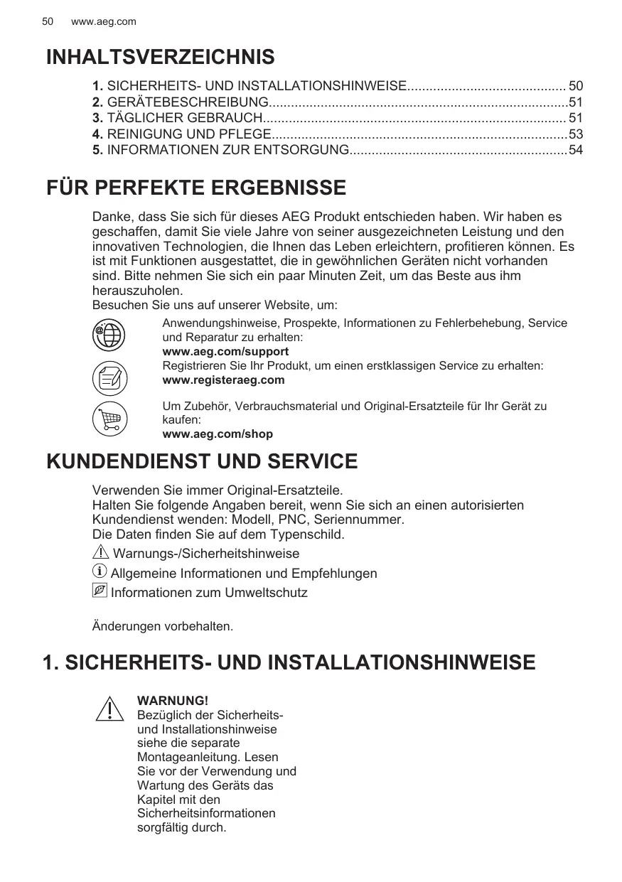POUR DES RÉSULTATS PARFAITS Merci d’avoir choisi ce produit AEG. Nous l’avons conçu pour qu’il vous offre des performances irréprochables pendant de nombreuses années, en intégrant des technologies innovantes vous simplifiant la vie – fonctions que vous ne trouverez peut-être pas sur des appareils ordinaires. Veuillez prendre quelques instants pour lire cette notice afin d’utiliser au mieux votre appareil.
