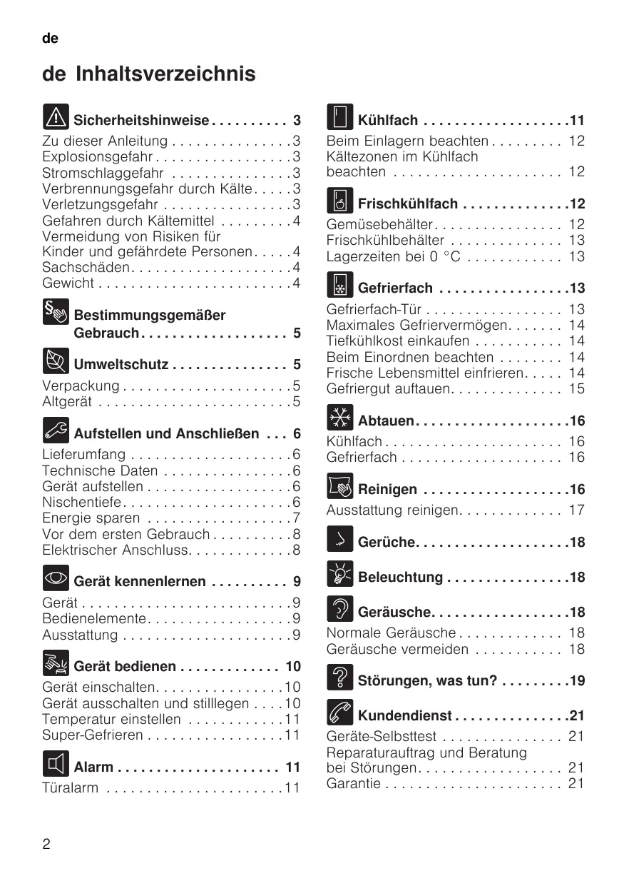 = Abtauen . . . . . . . . . . . . . . . . . . . .16 Kühlfach . . . . . . . . . . . . . . . . . . . . . . 16 Gefrierfach . . . . . . . . . . . . . . . . . . . . 16