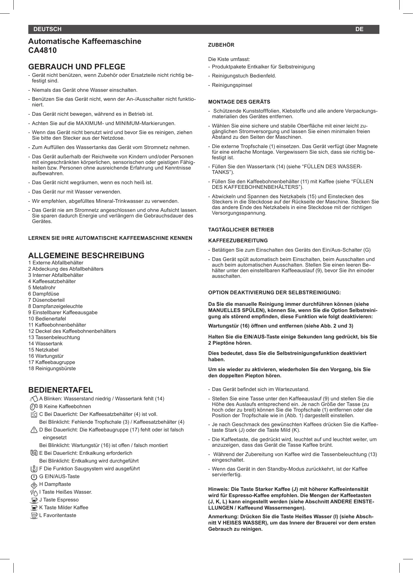BEDIENUNGSANLEITUNG CA4810 SOLAC