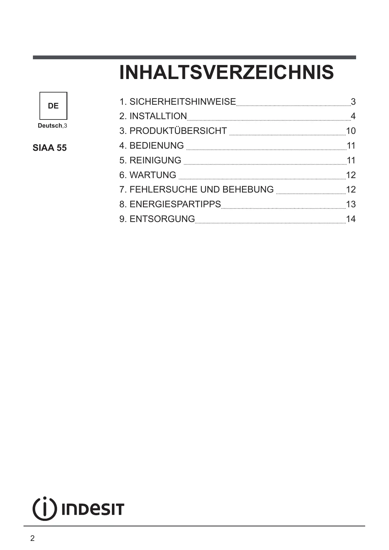 Finden Sie kostenlos die Bedienungsanleitung des Geräts SIAA55 INDESIT als PDF.