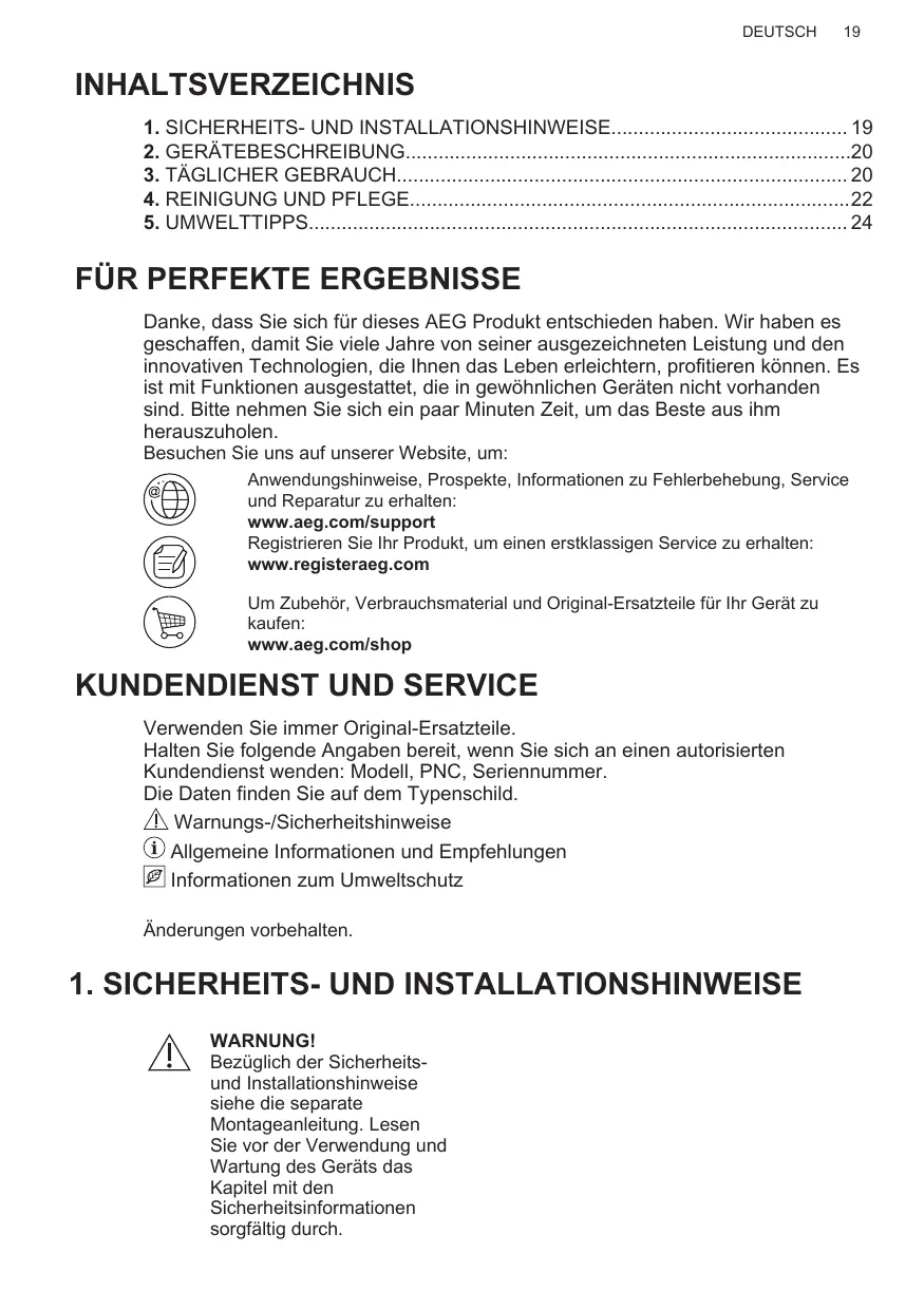 Enregistrer votre produit pour un meilleur service : www.registeraeg.com Acheter des accessoires, consommables et pièces de rechange d’origine pour votre appareil : www.aeg.com/shop