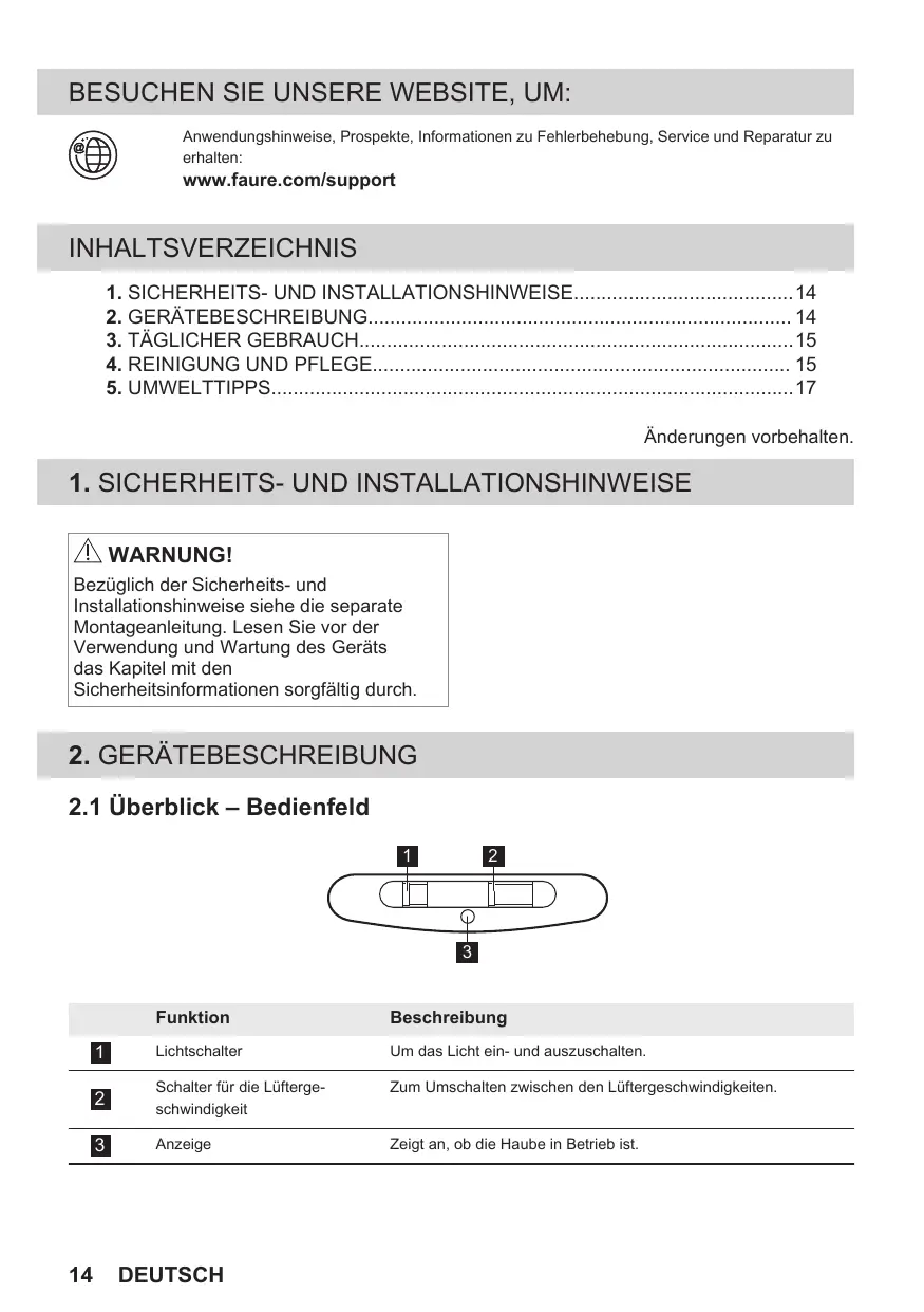 BEDIENUNGSANLEITUNG FFG325S FAURE