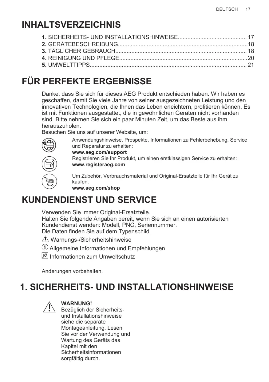 Enregistrer votre produit pour un meilleur service : www.registeraeg.com Acheter des accessoires, consommables et pièces de rechange d’origine pour votre appareil : www.aeg.com/shop