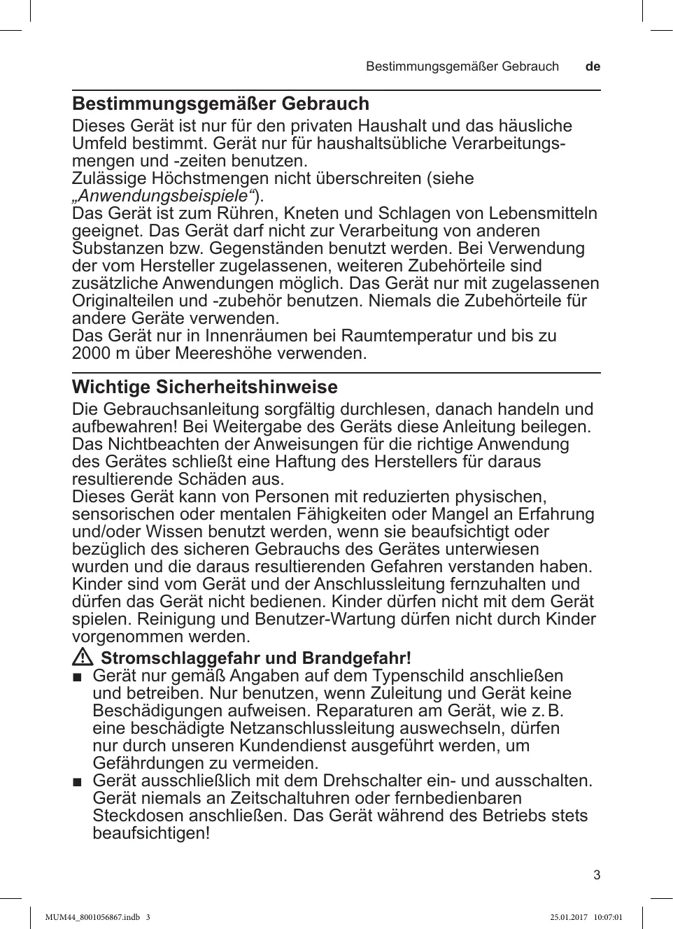 Dieses Gerät ist nur für den privaten Haushalt und das häusliche Umfeld bestimmt. Gerät nur für haushaltsübliche Verarbeitungs- mengen und -zeiten benutzen.