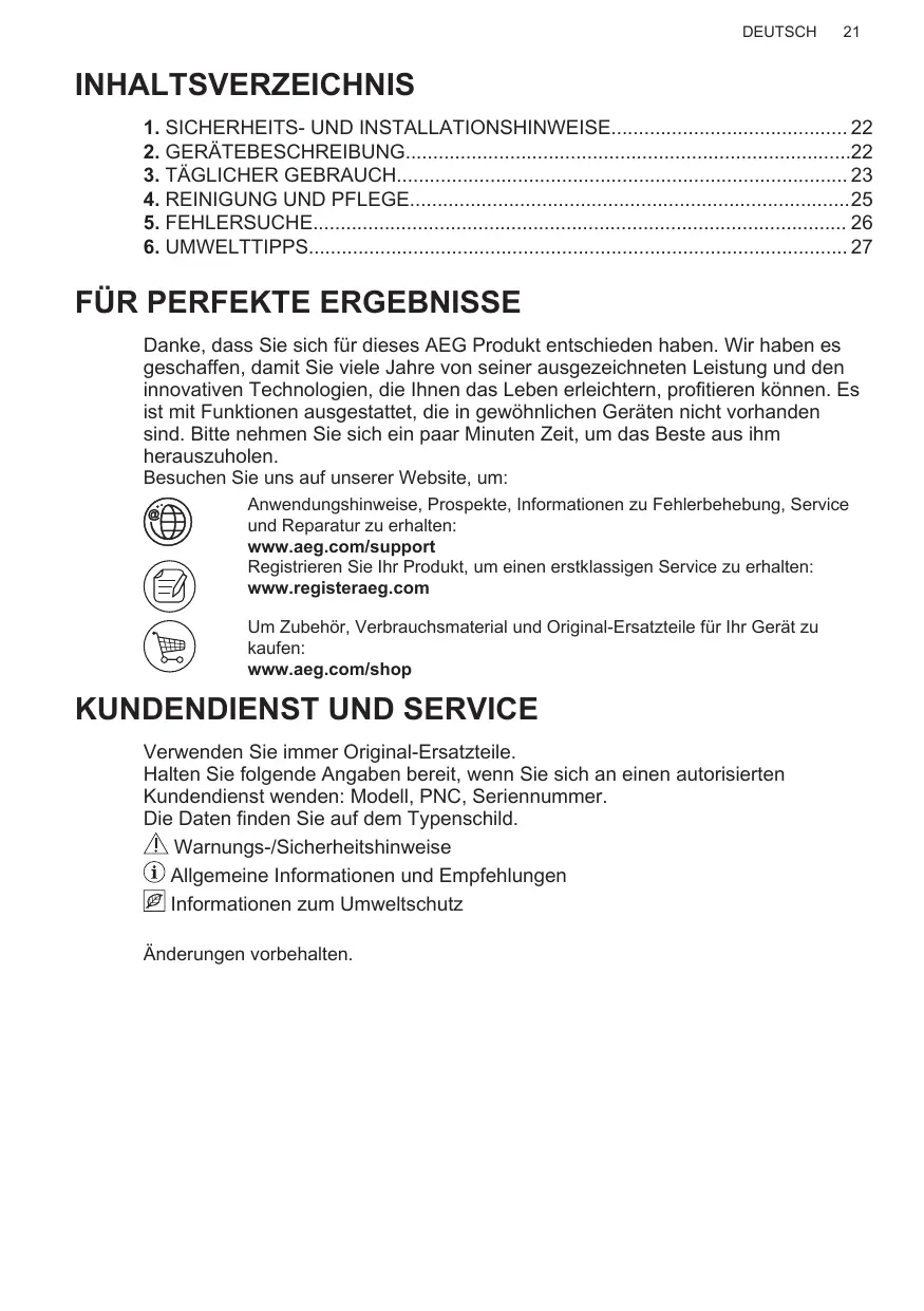 Finden Sie kostenlos die Bedienungsanleitung des Geräts DGK6981HM AEG als PDF.