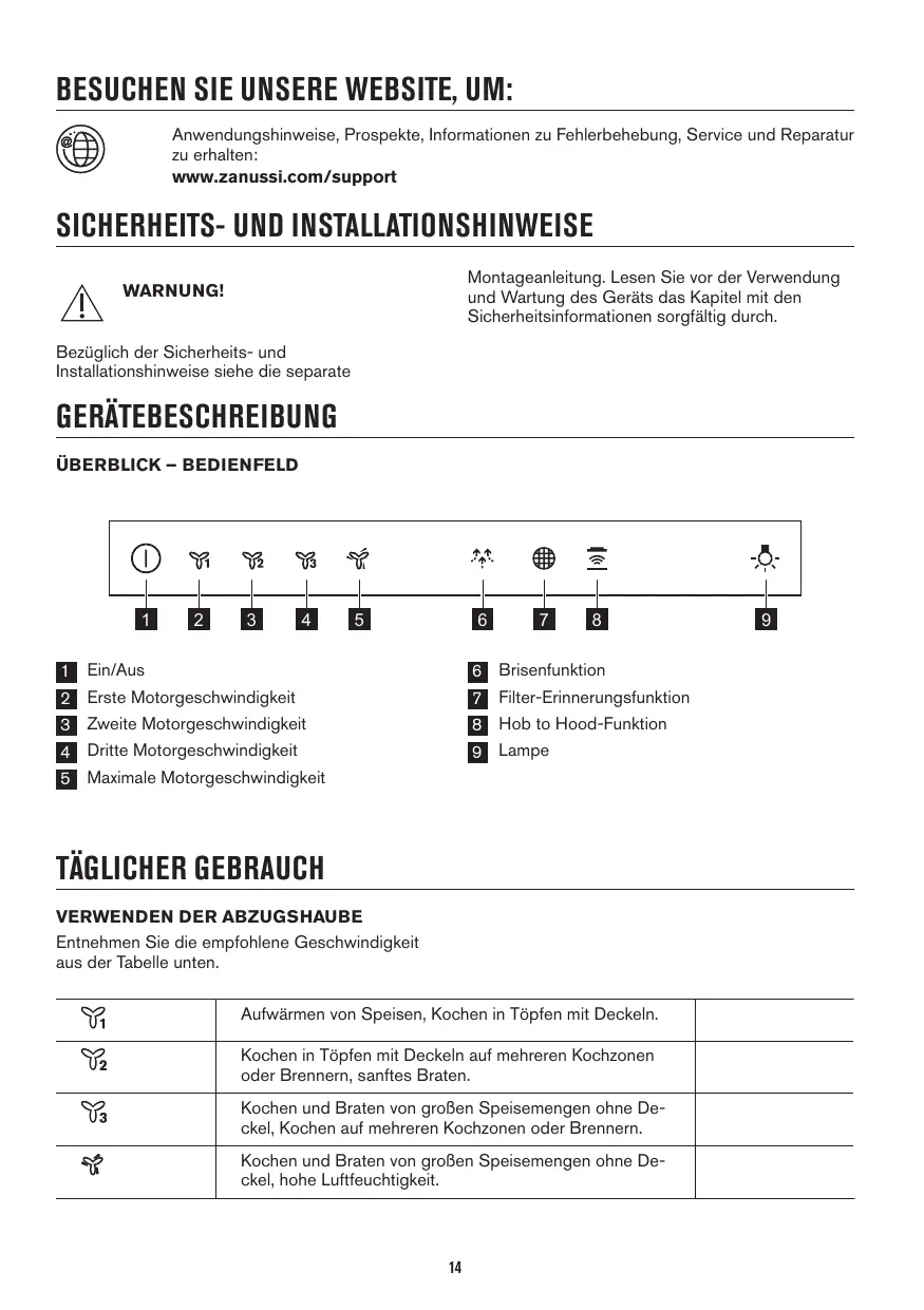 BESUCHEN SIE UNSERE WEBSITE, UM: Anwendungshinweise, Prospekte, Informationen zu Fehlerbehebung, Service und Reparatur zu erhalten: www.zanussi.com/support