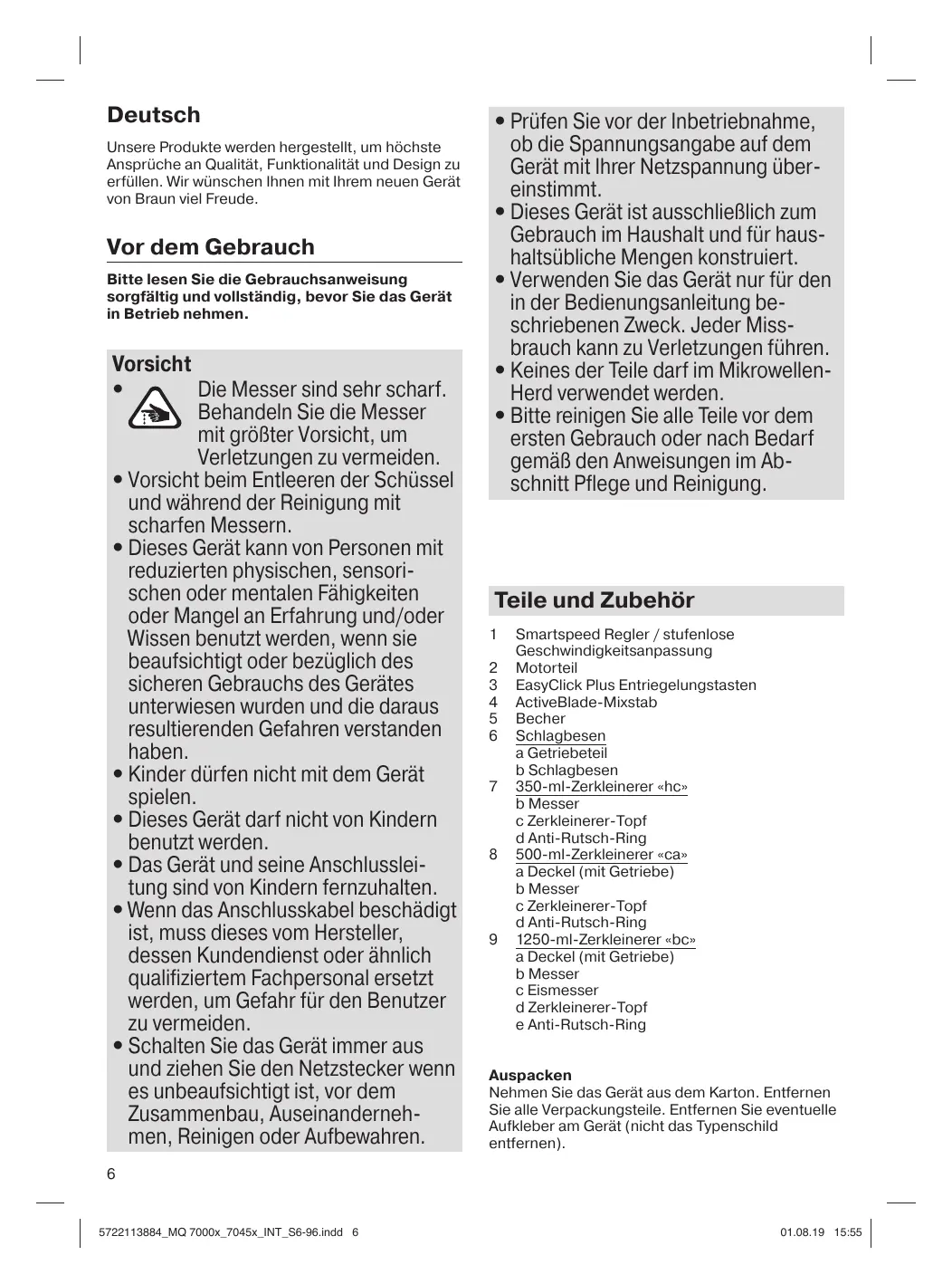 Laden Sie die Anleitung für Ihr Stabmixer kostenlos im PDF-Format! Finden Sie Ihr Handbuch MULTIQUICK 7 MQ 7025 - BRAUN und nehmen Sie Ihr elektronisches Gerät wieder in die Hand. Auf dieser Seite sind alle Dokumente veröffentlicht, die für die Verwendung Ihres Geräts notwendig sind. MULTIQUICK 7 MQ 7025 von der Marke BRAUN.
