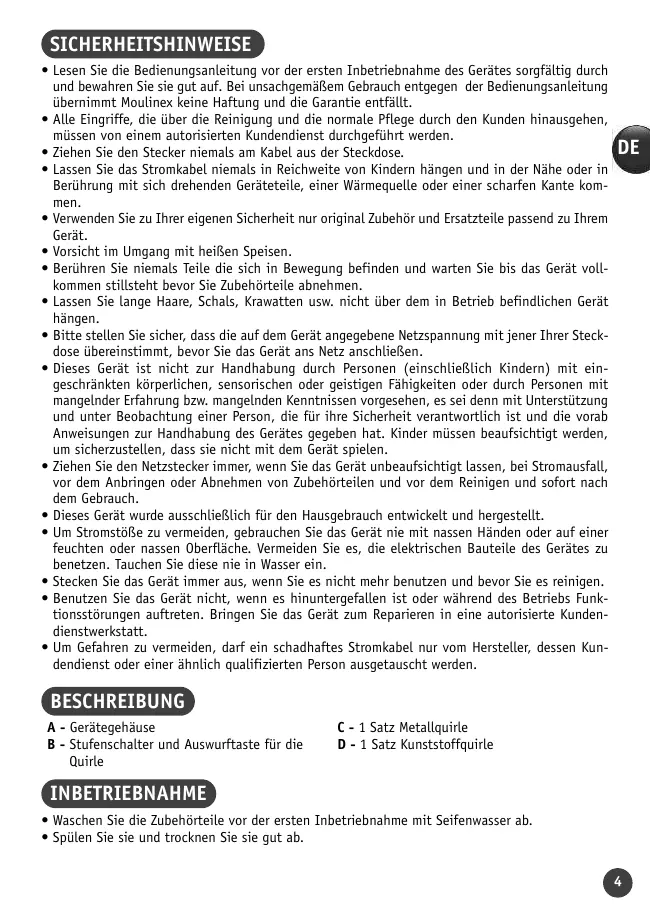 BEDIENUNGSANLEITUNG ABM11 MOULINEX