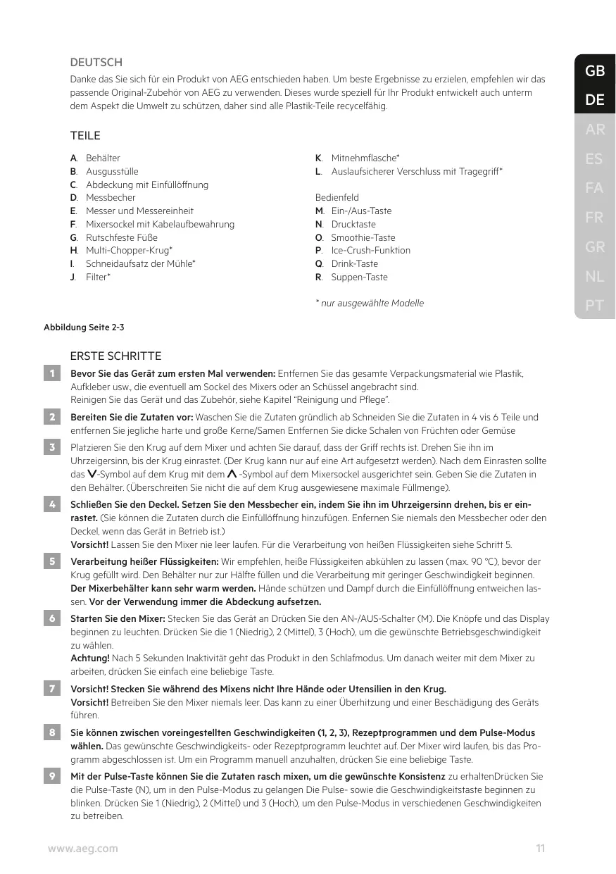 12 Toutes les pièces, sauf la base du blender, peuvent être nettoyées au lave-vaisselle. Régalez-vous avec votre nouveau produit AEG!