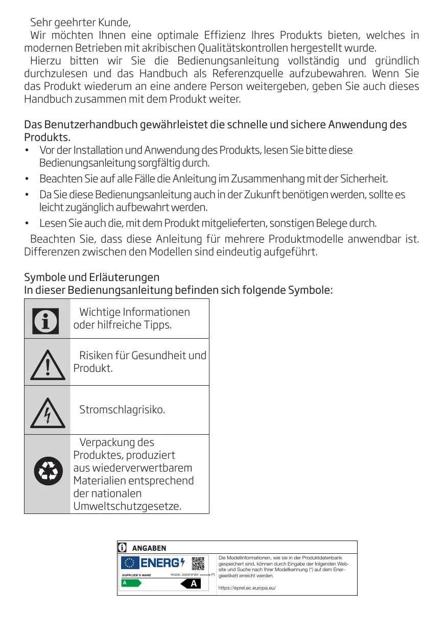 La durée minimale de garantie du réfrigérateur que vous avez acheté est de 24 mois. Cet appareil est doté d’une source d’éclairage de classe énergétique «G». Seuls des réparateurs qualifiés sont autorisés à procéder au remplacement de la source d’éclairage de cet appareil.