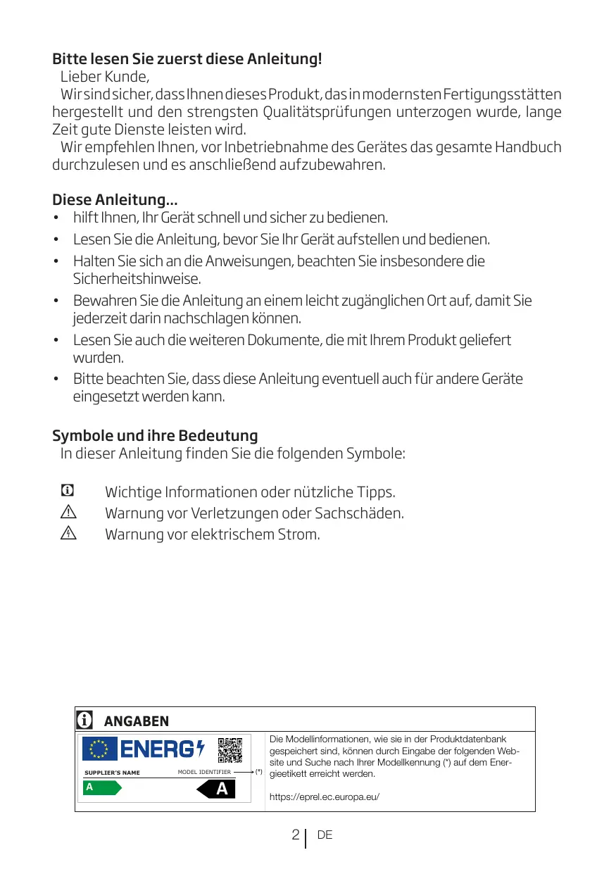 Bitte lesen Sie die folgenden Hinweise aufmerksam durch. Bei Nichtbeachtung dieser Angaben kann es zu Verletzungen und Sachschäden kommen. In diesem Fall erlöschen auch sämtliche Garantie- und sonstigen Ansprüche. Originalersatzteile stehen für einen DE