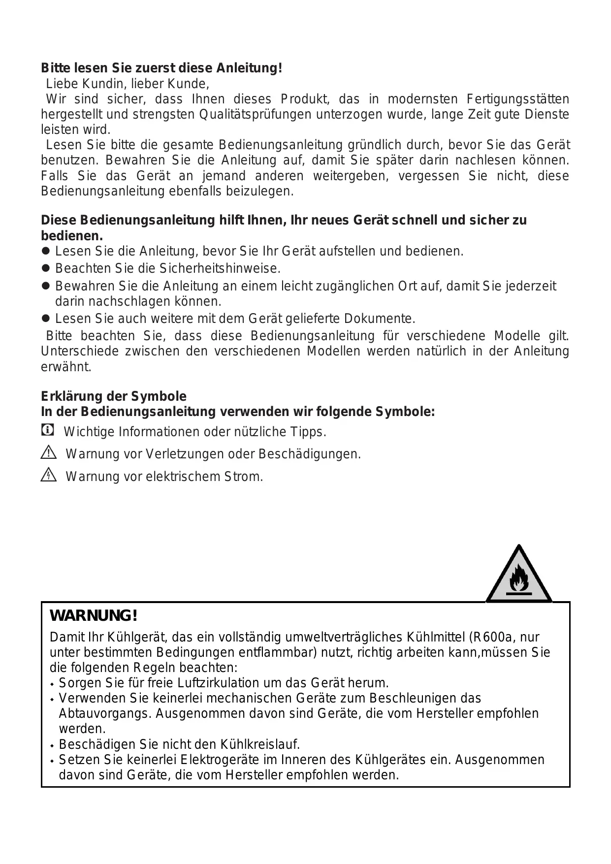 ADVERTENCIA Con el fin de garantizar un funcionamiento normal de su frigorífico, que utiliza un refrigerante totalmente respetuoso con el medio ambiente, el R600a (inflamable sólo en ciertas condiciones), se deben observar las pautas siguientes: