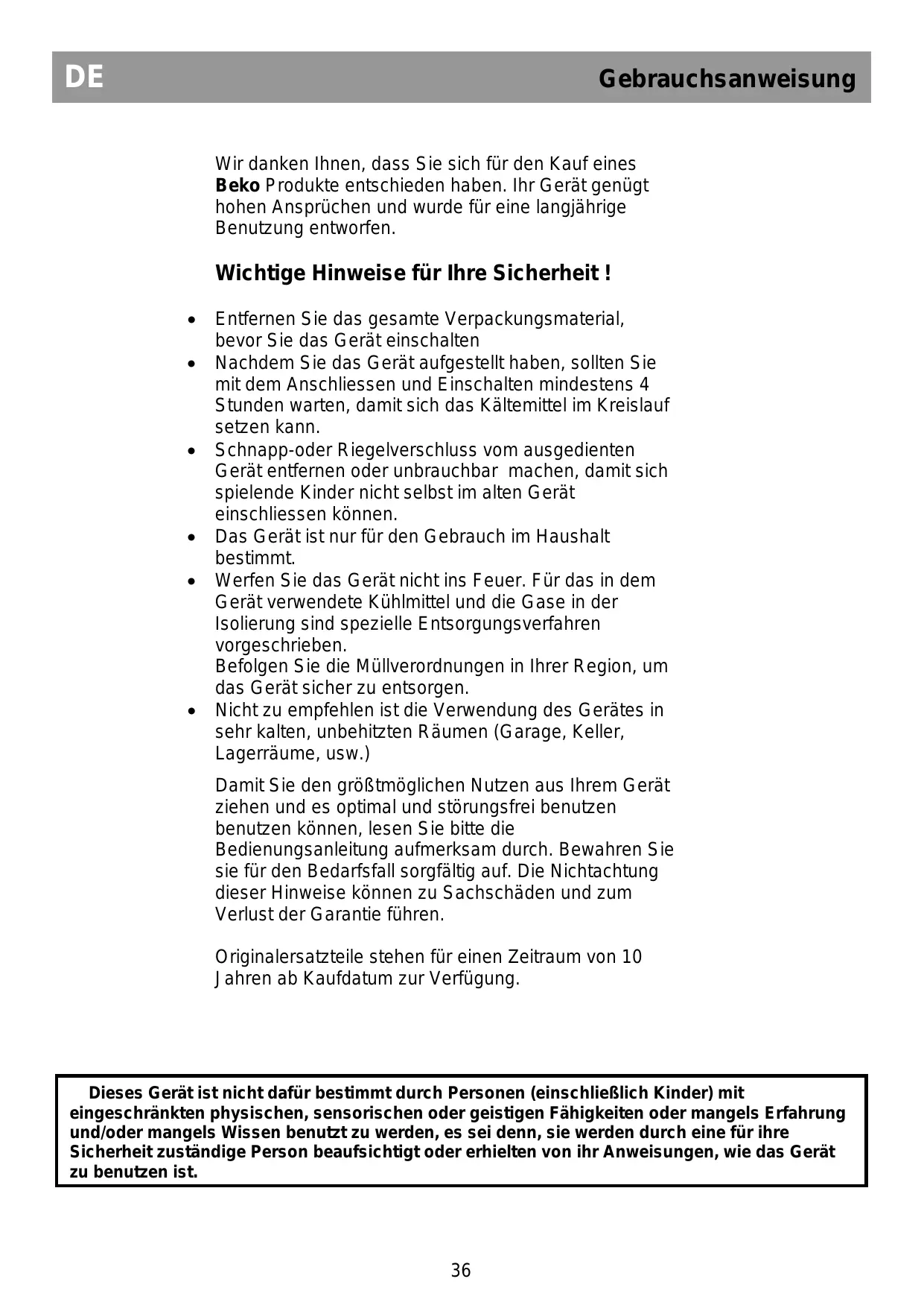 Andere Handbücher BEKO