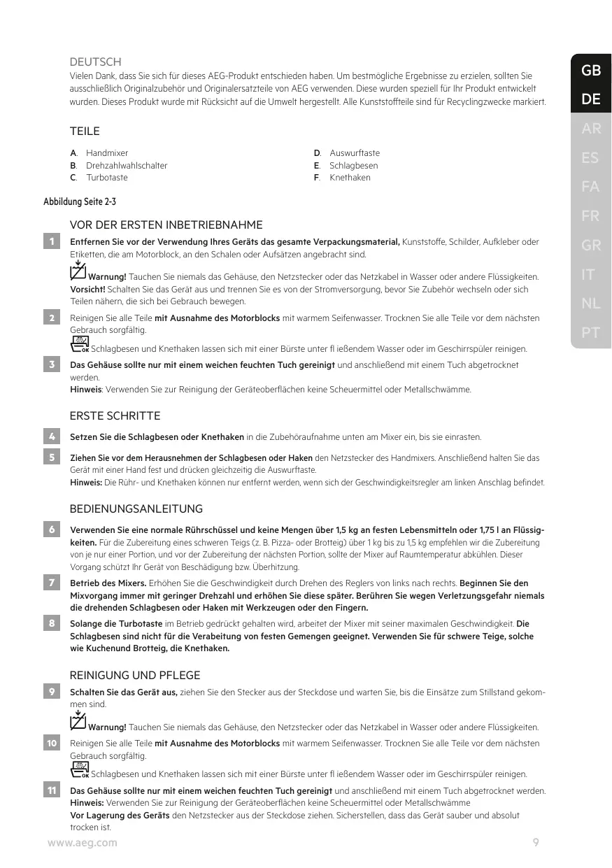 Finden Sie kostenlos die Bedienungsanleitung des Geräts HM3310 AEG als PDF.